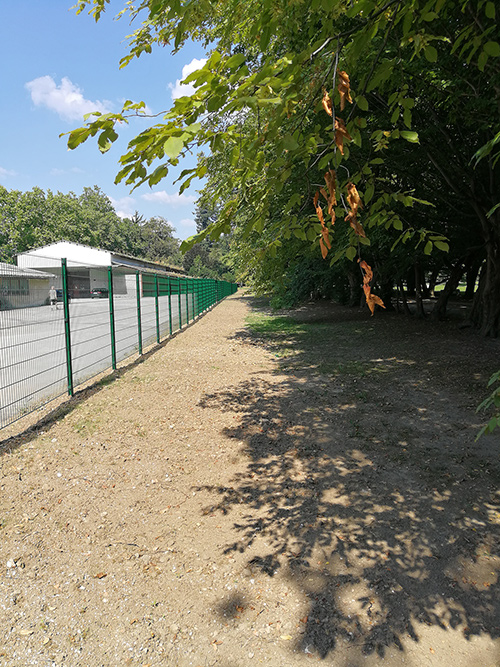 Celotno igrišče v okolici šole je odprtega tipa, ki ga v celoti ne moremo ograditi, zato smo se skupaj z oddelkom za družbene dejavnosti dogovorili za namestitev ograje pri prvi triadi. Mimo šole se neposredno pred učilnicami sprehajajo sprehajalci, lastniki psov, ki ne pobirajo iztrebkov, vozijo se s kolesi, skuterji in električnimi skiroji. Vse to je za učence in učitelje zelo moteče. Izhodi na zelenico so zelo nevarni, še posebej v času podaljšanega pouka med 14. uro in 16. uro.