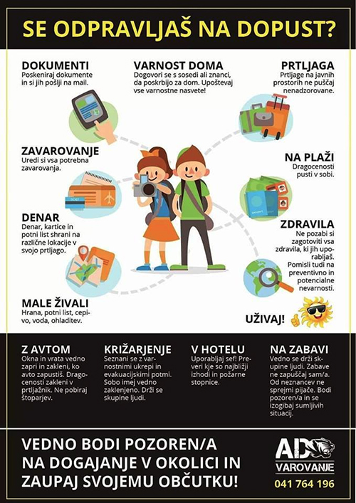 Počitnice naj bodo namenjene sprostitvi, druženju. Čas počitnic pa preživite predvsem varno, tako doma, kot v okolju, kjer boste preživljali proste dni.