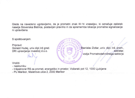 ODGOVOR MINISTRSTVA ZA INFRASTRUKTURO