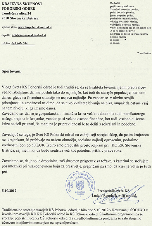 KS Pohorski odred Tomšičeva ulica 24 2310 Slov. Bistrica Tel: 041 462 544